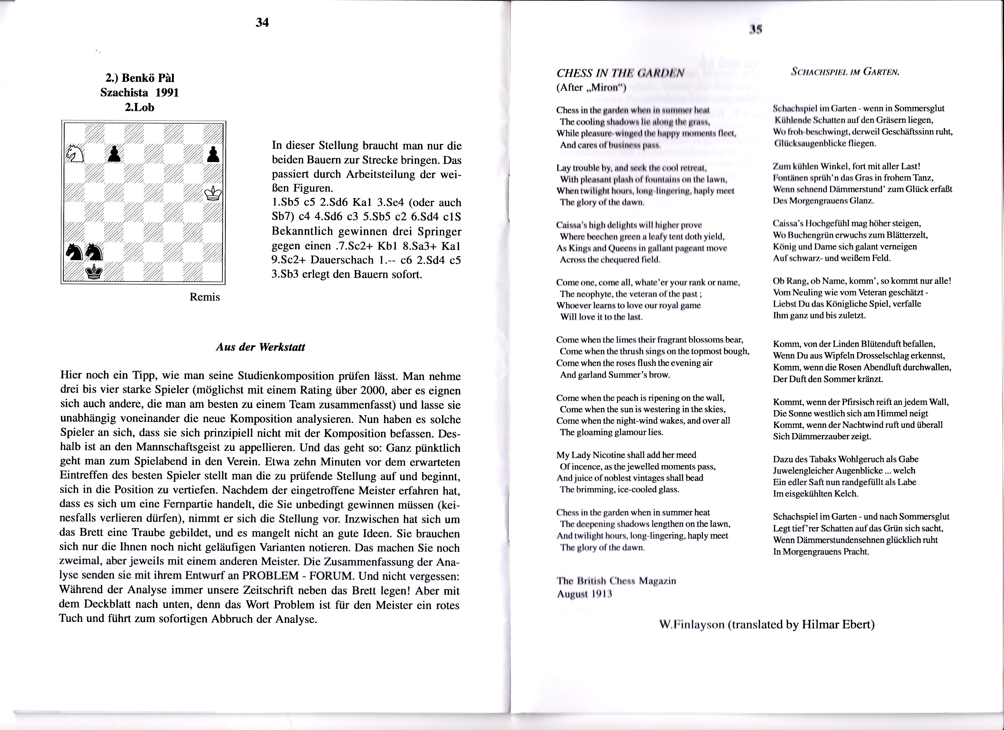 Übersetzung in: Deutsches Problem-Forum III 2000 S. 35& he-chess.de 15.VII.2002, I 2009