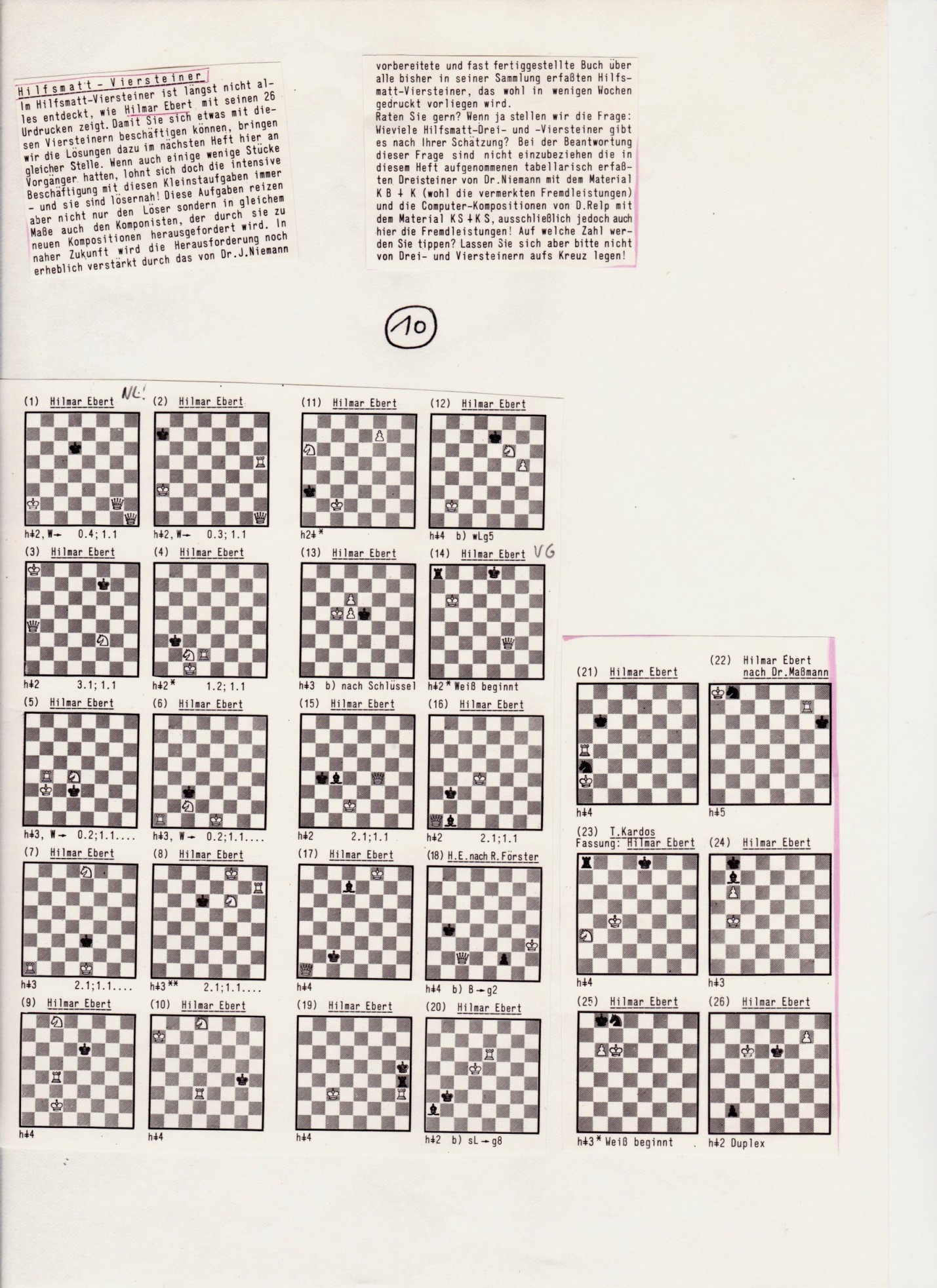 # 010: Hilfsmatt-Viersteiner. (mit 26 Urdrucken)