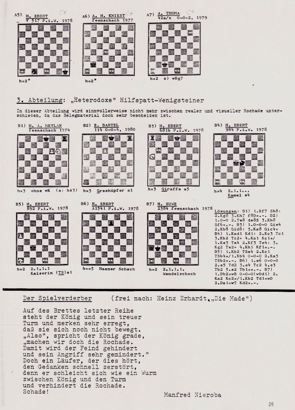 "0-0-8" (Rochade-Zeitschrift "0-0-0", hrsg. v. H. Suwe, Klein-Winsen) S. 24-26.