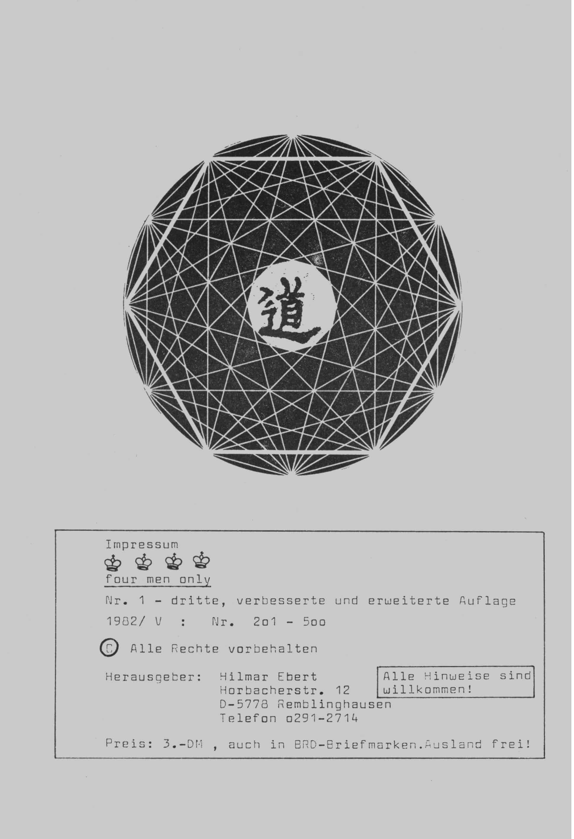 four men only, # 1, 3., verbesserte und erweiterte Auflage, 32 S. + 2 Nachtragsseiten S. 33-34, V 1982