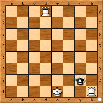 LÖSUNGEN: Nr. 1: 1.Th2! Kb1 2.Kd1 Ka1 3.Kc2 Ka2 4.Th3 Ka1 5.Ta3#; 1.0–0–0? Nr. 1 a: 1.Ta2! Kh1 2.Kf2 Kh2 3.Ta3 Khl 4.Th3#; 1.0–0–0?? Nr. 2: 1.Tf2+! Kgl; 2.Kf2 Kh2 3.Th8#; — 1.Kf7 2.Th4 Ke3 3.Tg7# Nr. 2 a:Urfassung 1.Ta4 Kg3 2.Kfl/0–0 (Dual), nach Spiegelung 1.Th4! Kal 2.Kc2 Ka2 3.Ta4#; 1…Kb3 2.Kc1 3.Ta3#, 1…Kc3 2.Tbl Kd3 3.Ta3#: