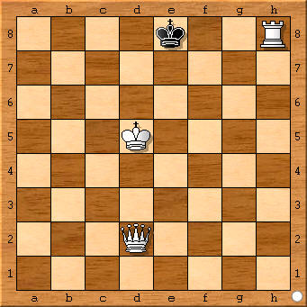 (deutsch, mit einer schwedischen Zusammenfassung von Kjell Widlert), Springaren (31) S. 12-15, XII 1987 Im direkten Mattproblem mit drei oder vier Steinen sind trotz einiger Publikationen in jüngster Zeit bei weitem nicht alle denkbaren Rochadeformen (kleine und große, schwarze und weiße) in den entsprechenden Materialgruppen bewältigt worden. A) IMAGINÄRE Rochade: Als bloßes Verführungsmoment ist die Rochadestellung schon im Dreisteiner (Nr. 1) möglich (vgl. Nr. 1 a: H.E.,Urdr., Kel,Tal-Kall #4), im Viersteiner bieten sich zwei Türme an (Nr. 2), was aber in Nr. 2 a (J.Hane,Tägliche Rundschau, 1888: Kel,Tal-Kh2 #3) fehlschlug und eine Heilmattungsspielung notwendig machte, wie Nr. 3 zeigt; eine auch andere Materialien denkbar (z.B. auch Nr. 3 a: H.E., Urdr. Kd6, Ba7-Ke8,Th6! #6). B) ILLEGALITÄT der Rochade: Reizvollen ist es, die Rochade nach retro-analytischer Betrachtung als "illegal" scheitern zu lassen (Nr. 4), was auch schon in der Studie Nr. 4a: K.Hannemann, Skakbladet,1921: Kg6, Bh2-Ke8, Th8! #4 dargestellt wurde; in der analogen Nr. 4 b (H.E., Urdr.:Kb6,Ba4-Ke8,Ta8;w zieht, s gewinnt!) aber eine weitere Kniff erlaubt: Nr. 4b ist in der Variation die Frage nach dem Schlüssselzug: Schwarz zieht, kann Weiß in weiteren 7 Zügen mattsetzen" möglich (natürlich kann er nicht!). Die klassische Nr. 5 wurde im Rahmen der "four men only"-Reihe erst 1986 als in der Urfassung mit wKe5 nebenlösig nachgewiesen, zugleich aber verbessert: sie ist also auch weiterhin Zuglängenrekord mit diesem Material! C) REELE Rochade: I) Dreisteiner erlauben die Rochade (Nr. 6) wohl nur unter Toleranz von Dualen, was schon für Nr.6a (J.Breuer, Schwalbe, 1938: Kel, Tbl-Kg7! #10) galt bzw. für die große Rochade (Nr. 6b: J.Mortensen, 225), Thema Danicum, 1983: Kel,Tal-Ke5; #13). II) Viersteiner mit zwei weißen Steinen sind in analoger Weise denkbar; dualfrei ist jedoch bisher nur Nr.7 bekannt, wobei die große Rochade nur mit dualistischem Spiel möglich scheint (Nr. 7 b: H.E., Urdruck!: Ke1, Tal-Kd3,Lhl; #16). III) Viersteiner mit drei weißen Steinen bieten reichhaltige Möglichkeiten, um einen einfachen realisierten mit der Dame (Nr. 8: Mit Zweitlösungssetzung oder zwei Lösungen / Nr. 8a: T.Karkos, Felsvideky Kutyik Lapja, 1978: Kel,Thl,Da8-Kbl; #2, z.T.) oder als Schlüsselzug im Dreizüger mit vielfältigem Verführungsspiel (Nr. 9). Natur gemäß sind Zweizüger-Stücke am häufigsten in Nr. 10: wäre auch die 0-Form Te6-Kh8 möglich. Das Grundmotiv aus Nr. 11 ist neben der trivialen einzügigen Version (Nr. 11 a: B.Lurie, Schachmaty wSSR, 1983/V, S.32: Kel,Tbl,Tbl-Khl; #1) auch zum Zwilling ausgebaut worden (Nr.11 b:W.Speckmann, Urdr. Deutsche Schachzeitung, 1971: Kfl, Tbl,Tbl-Kh1 #2, b) alles nach links!) Zur verführerischen Nr. 12 vergleiche man Nr. 12a (W.Keym, Allgemeine Zeitung Mainz, 1971: Kal Tel-Kg2 #3). Ein bekanntes Lloydstück wäre ohne verführischen Bauern dreifach zu lösen (Nr. 13). Die große Rochade als Schlüssel zeigt seit Nr. 14, die kleine im einzigen Mehrzüger (Nr. 15): Während mit weißem Läufer noch keine Korrektur bekannt ist, vermutlich ist hier die Dualfreiheit das Problem, sind Springer (Nr. 16,17) und Bauer (Nr. 18) bewältigt mit entsprechend mehr Zügen, aber dualfreier Hauptvariante. Wer komplizierte die kleine Rochade mit S+T, die große mit B+T, wer die kleine als Schlüssel mit D+T?!