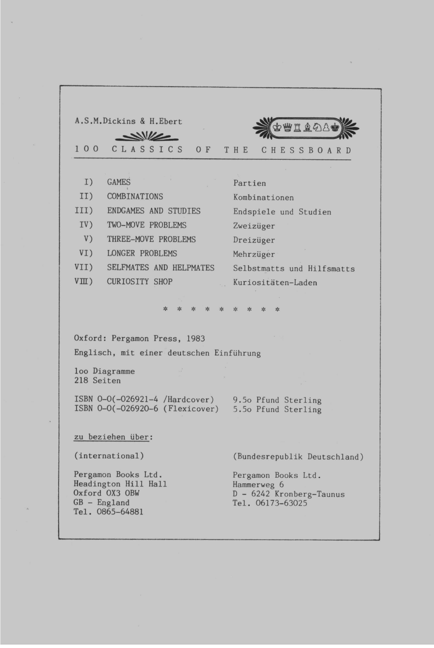 2) 395 Orthodoxe Zuglängen-Rekorde im Wenigsteiner four men only, Nr.1 2., verbesserte und erweiterte Aufl., 1981/XI, 26 S. (vgl. Nr.32)