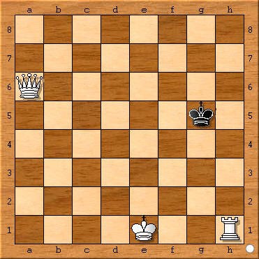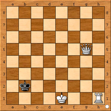 Ke1, Da6, Th1 - Kg5 Matt in 3 Zügen