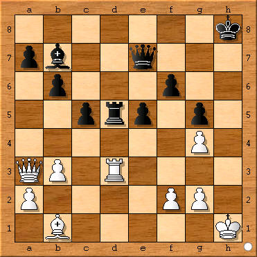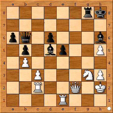 Nr. 1: Beginnen wir mit einigen kleinen Beispielen! Der nämliche Herr Giegold, der mit so vielen Schachproblemen den Freunden des Königlichen Spiels besonders harte Nüsse vorgesetzt hat, zeigt hier auch in der Partie eine scharfe Klinge - mit problemhaften Lenkungen der weißen Steine zur Vorbereitung des abschließenden Damenopfers! 1.-Dh7+! erzwingt, da zugleich der Turm auf d3 angegriffen ist, 2.Tg3; nach 2.-Td1+! (2.-Dh3:+? würde nach 3.gh3: Td1+ 4.Kh2 Th1+ 5.Kg3 Tg1+ nur ein Remis erreichen) 3.Kh2 Th1+! wird der weiße Monarch zuerst einmal auf das Feld g3 gelenkt (nach 4.Kh1:? würde 4.-Dh3:+! sofort das Matt erzwingen: 5.Kg1 Dg2: matt). Nun, nach 4.Kg3, schlägt ein anderes Damenopfer (!) durch: 4.-Dh4+!! 5.Th4:+ gh4: matt.