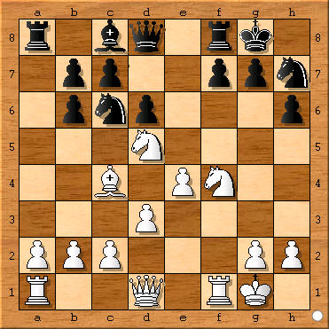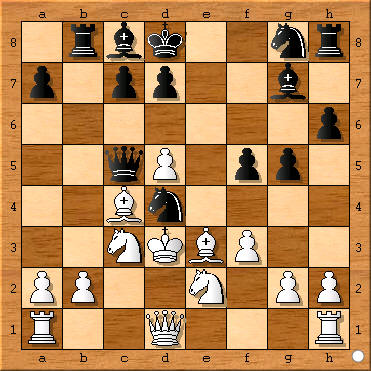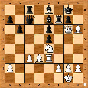 Nr. 5: Die echten Problemisten werden einwenden, dass die eigentlichen Problemthemen in der Partie aber niemals vorkommen könnten ... Für viele hochgestochene modernen Themen des Kunstschachs mag dies durchaus zutreffen, aber ein immerhin klassisches Mattmotiv sehen wir in dieser Simultanpartie: Nach 1.Dh7+! Kh7: (1.-Kf8? 2.Dh8 matt) 2.sf6+ Kh8 (2.-Kh6: 3.Th3+ Kg5 4.Tg3+ ...!) 3.Lg7:+! öffnet ein zweites Opfer alle Schleusen: 3.-Kg7: (3.-Tg7: 4.Th3+ ...) 4.Tg3+! und aufg.; es würde jetzt das sogenannte Sternfluchtthema folgen! 4.-Kf6/Kf8/Kh6/Kh8 5.Tg6 matt/Tg8 matt/Tg6 matt/Tg8 matt: Die 4 Fluchtfelder sind sternförmig angeordnet, die vier orthogonalen nennt man entsprechend Kreuzflucht - ob es diese auch bereits in der Partie geben mag?!