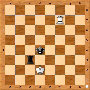 1) 1.Td7+! Kc4 2.Tc7+ Kd5 3.Tc3: Ke5 4.Ke3 Kd5 5.Td3+ Kc4 6.Td4+ Kc5 7.Kd3 Kb5 8.Tc4 Kb6 9.Kc3 Kb5 10.Kb3 Ka5 11.Tb4 Ka6 12.Ka4 Ka7 13.Ka5 Ka8 14.Kb6! Kb8 15.Tc4 Ka8 16.Tc8# (1.Tf4? Ke5! =).