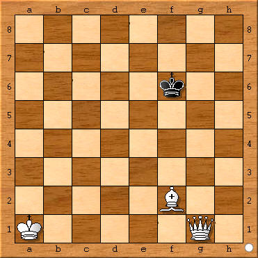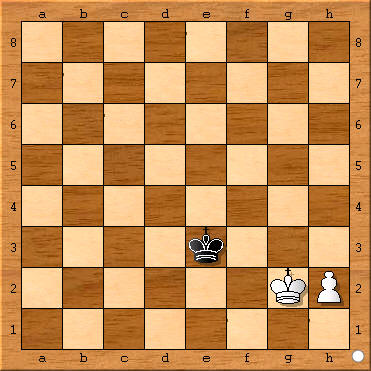 6) 1.Kg3! Ke4 2.Kg4 Ke5 3.Kg5 Ke6 4.Kg6 Ke7 5.Kg7 Ke6 6.h4 Kf5 7.h5 Kg5 8.h6 Kf5(!) 9.h7 Ke5 1o.h8D Kd4 11.Kf6! Kc3(!) 12.Ke5 Kd3 13.Dc8! Ke3 14.Dc3+ Ke2 15.Kf4 Kd1 16.Db2 Ke1 17.Ke3 Kf1(!) 18.Df2#. |