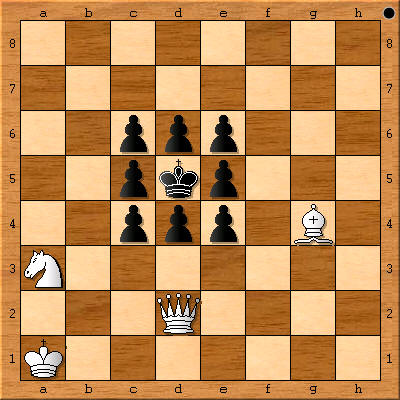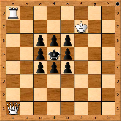 Matt in 5 a) Diagramm, b) Kf7 → h4