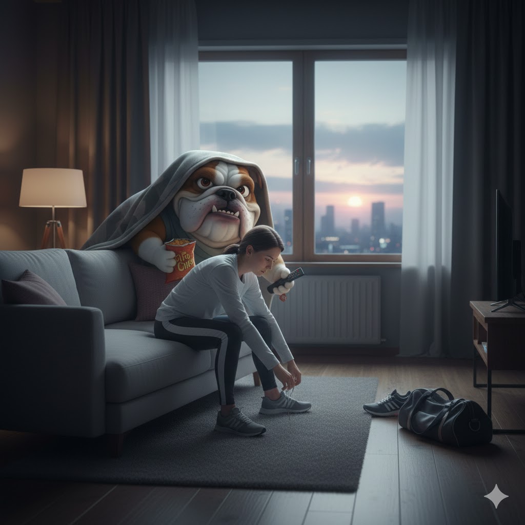Innerer Schweinehund (m.) English: The allegorical representation of one's own laziness and lack of discipline that prevents one from completing tasks. One must “overcome” it. The imagery of the “pig-dog” is unique; English terms like “inner weaker self” or “procrastination” are far too abstract and lack the humor of this internal adversary.