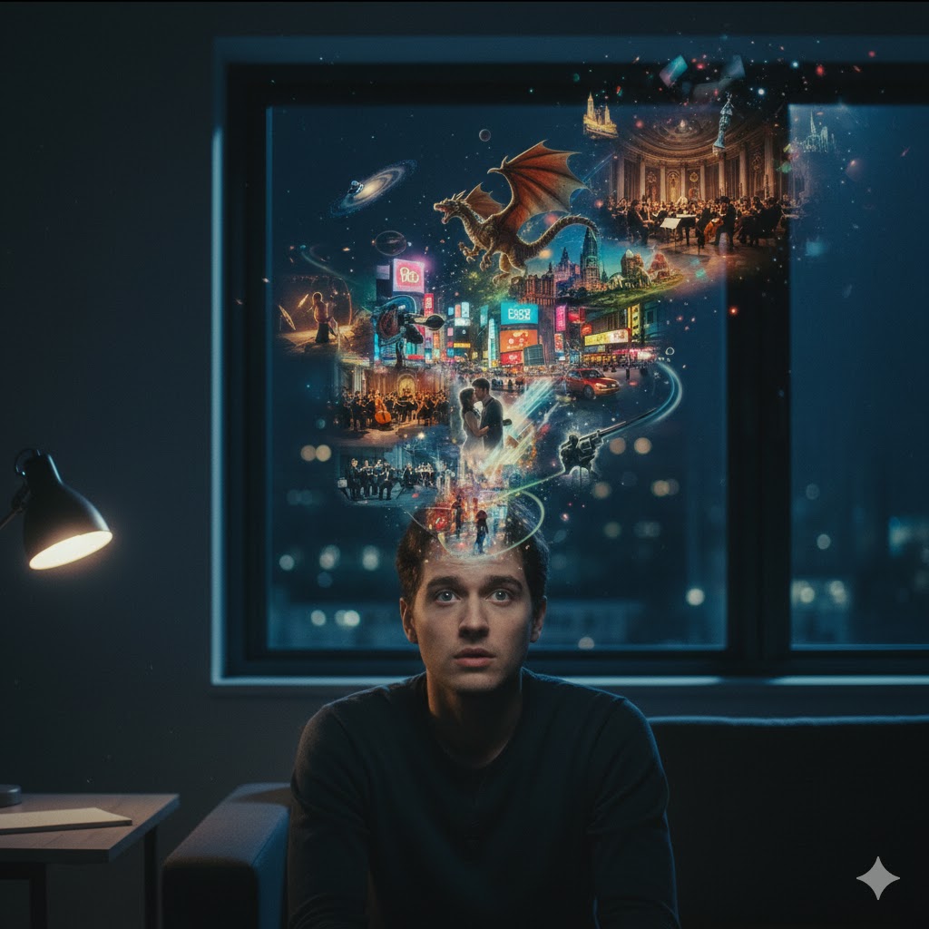 Kopfkino (n.) Deutsch: Die lebhafte, oft unkontrollierbare bildliche Vorstellung von Ereignissen oder Szenarien im eigenen Geist. Ein geniales Wort für die eigene Fantasie, wenn sie „einen Film abspielt“. Das Bild des Kinos im Kopf ist präziser als das schlichte „imagination“ und beschreibt die visuelle Intensität der Gedanken.