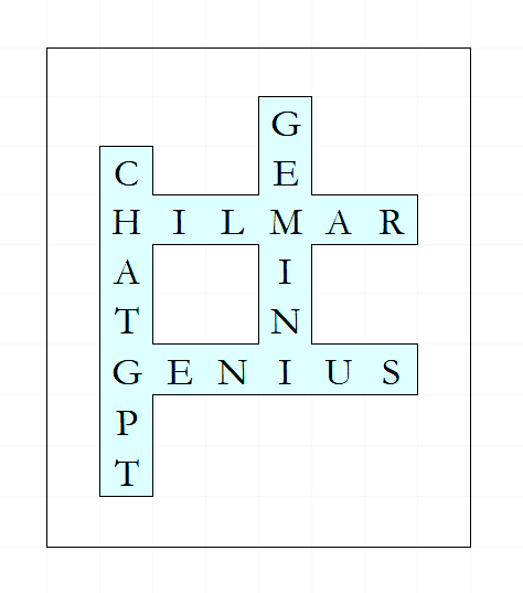 The defining feature of a Hil-Crossword is not the words, but the void they surround. The enclosed empty cell is not a defect or a by-product of construction; it is the goal. Meaning arises not from what is written, but from what is deliberately left blank and yet strictly bounded. Only when four independent linear sequences cooperate to protect an inner emptiness does structure become form. In this sense, the Hil-Crossword inverts the classical crossword idea: the words do not fill space, they guard it. The hole is not absence; it is the center, and without it, the figure collapses into triviality.