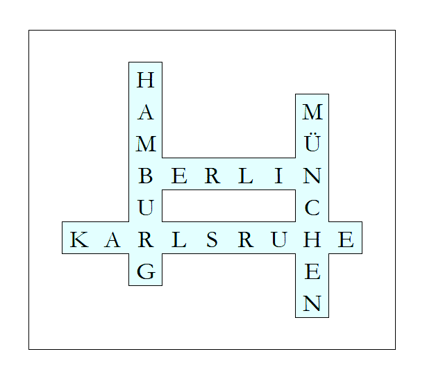 Das Hil-Crossword ist eine formal definierte kombinatorische Aufgabe und kein Rätsel im üblichen Sinn.  Ziel ist es, alle gültigen Kreuzwort-Anordnungen zu finden, die unsere strenge strukturelle Bedingungen erfüllen.