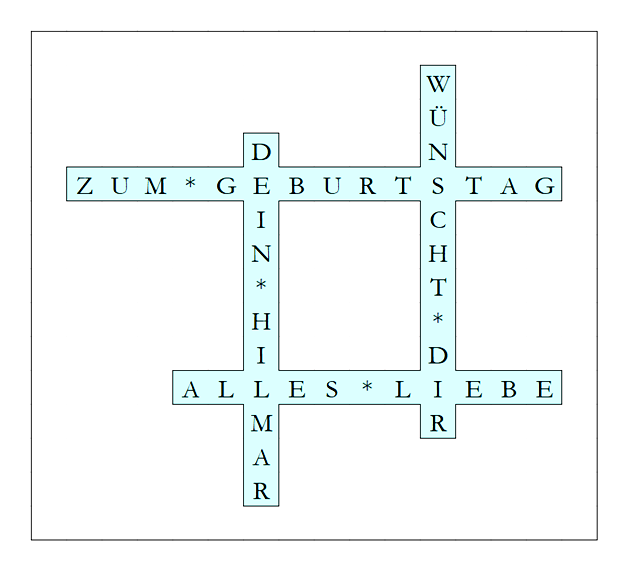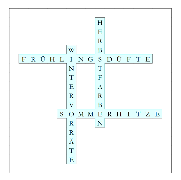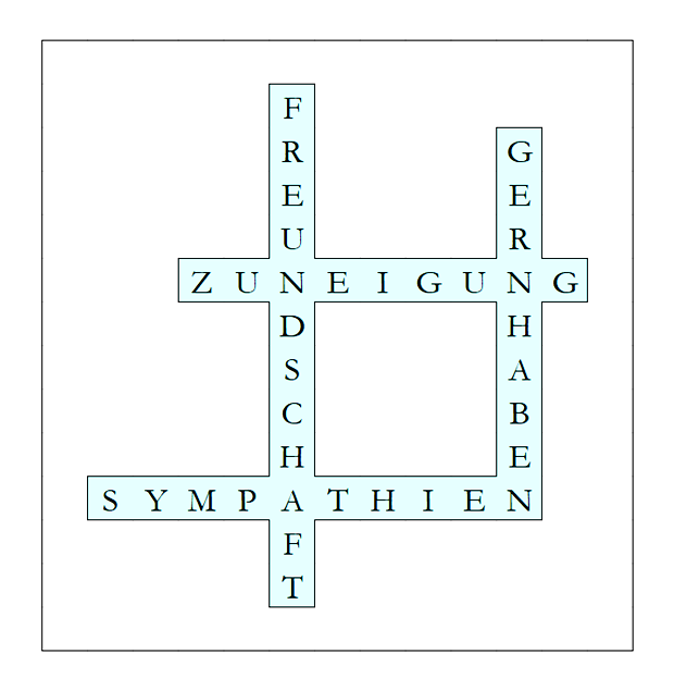 • Wörter: genau 4, 2D-Struktur: geschlossen