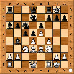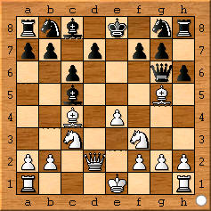 6. Nc3 g5 7. Nh3 Bxh6 8. Qg4 e5 9. Qg3 dxe4 10. Nxg5 exd4