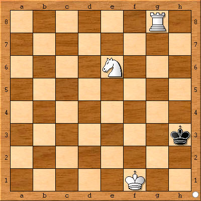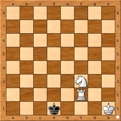 1...Kd1: 2.Ta2! Kc1 (!) 3.Sd2 Kd1 4.Sb3 Ke1 5.Kg2 Kd1 6.Kf3 Ke1