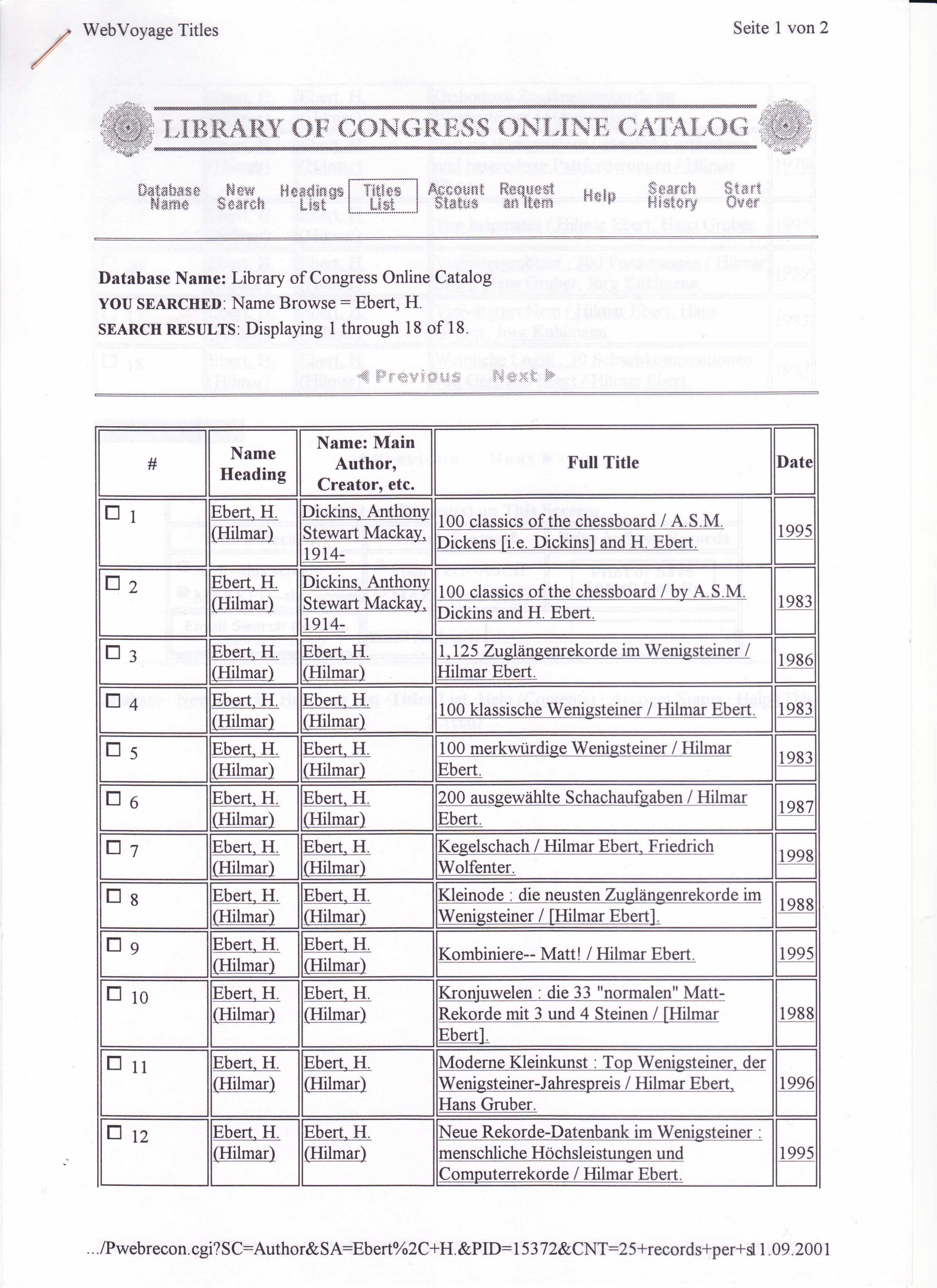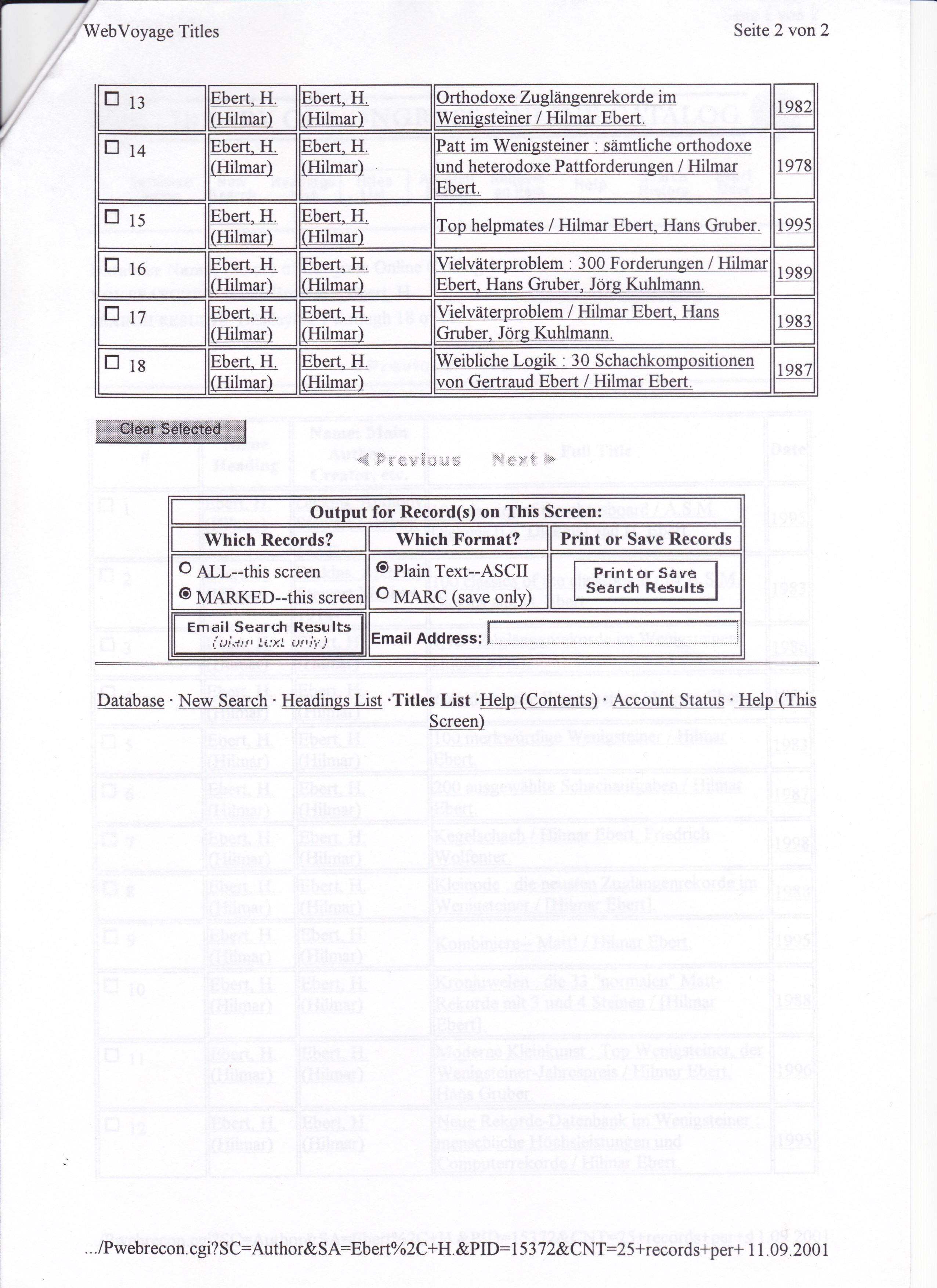 Beispiel: Aachen: Ebert, 1995, 13 S. = Ebert, Hilmar: Schach-Publikationen 2000