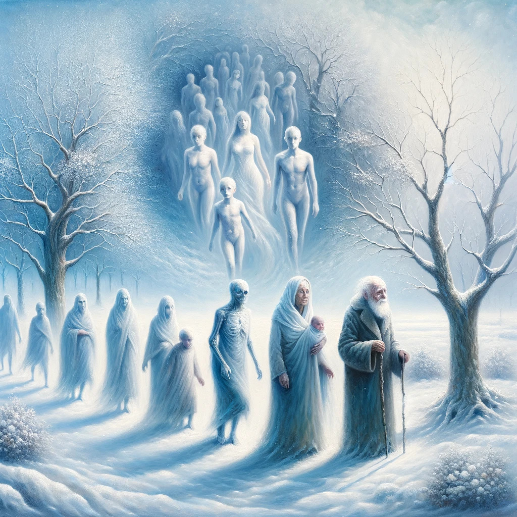 Schneewehen lösen zärtlich Zeit und Raum auf,