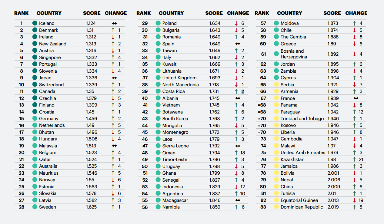 28 | Corruption Perceptions Index | Transparency International, 2024 |