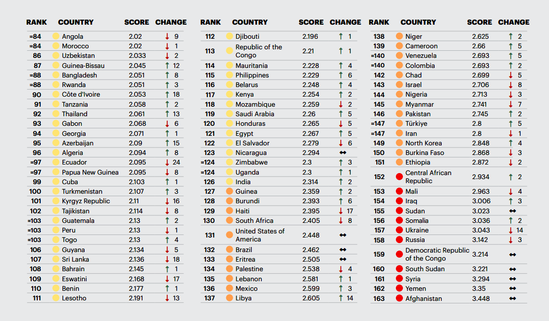 132 | Global Peace Index | Institute for Economics & Peace, 2024 |
